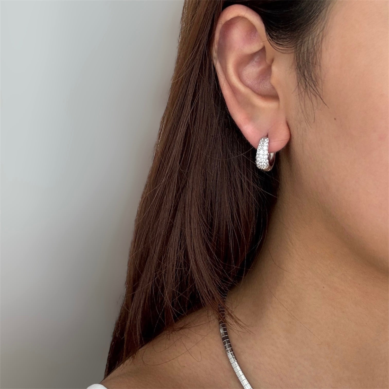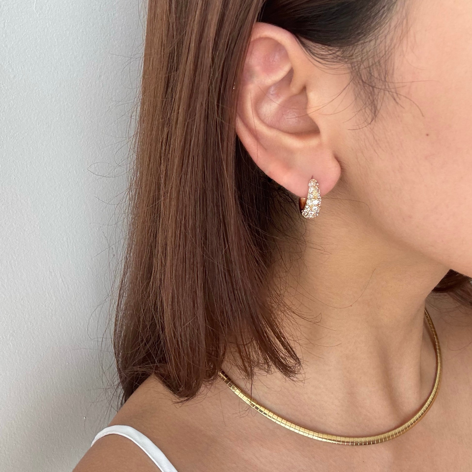 Medium sized hoop with stone setting. Comes in yellow gold and white gold.