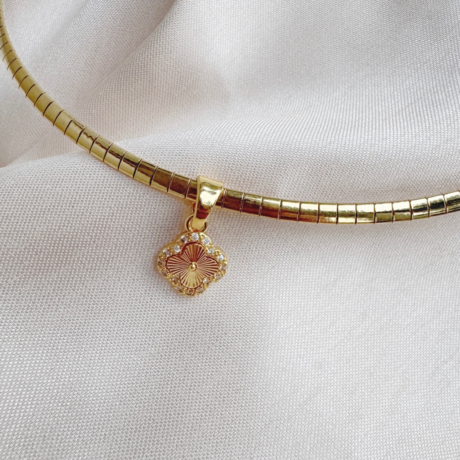 18k gold plated Omega necklace with removable flower pendant.