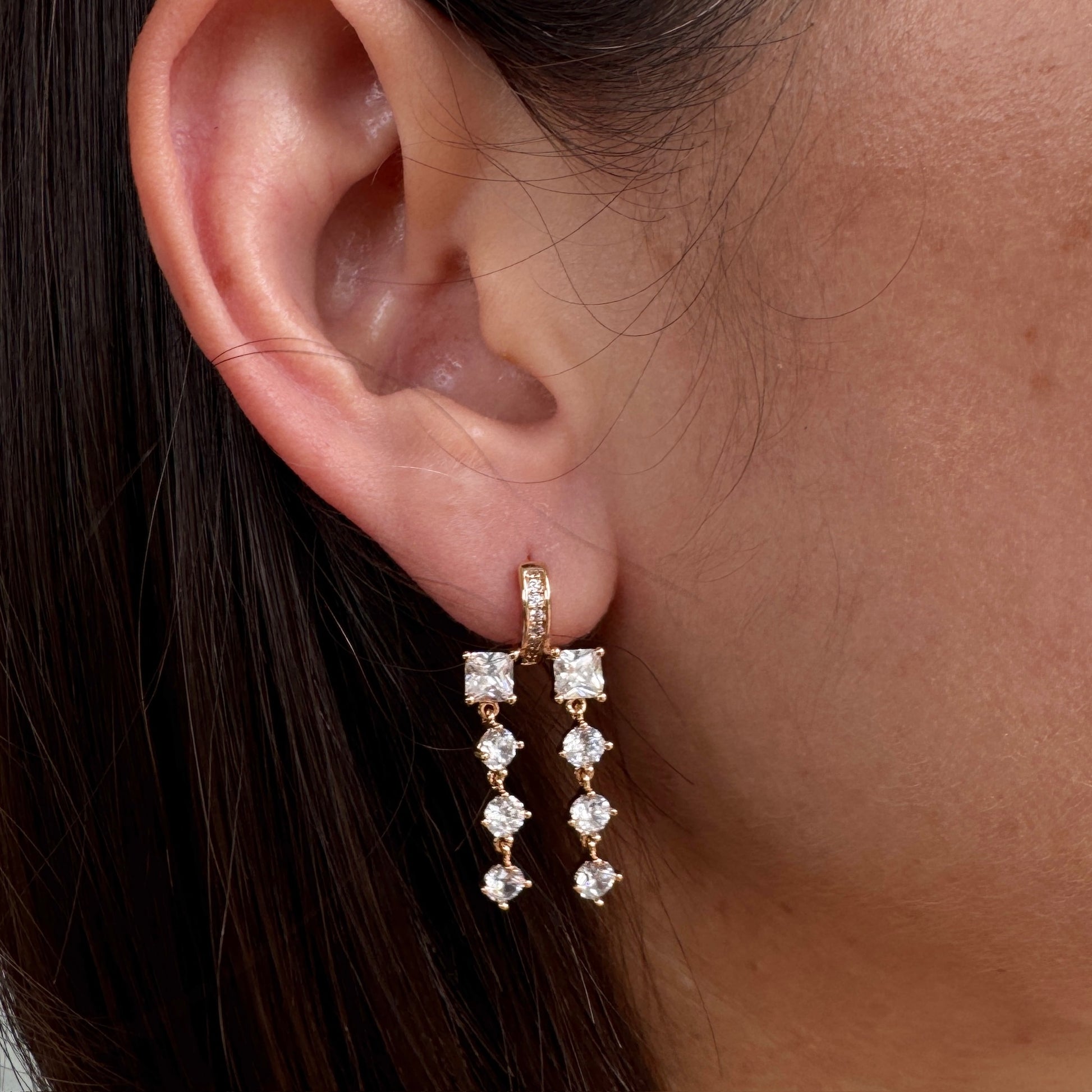 Materials: Cubic Zirconia, , 18k gold plated, hypoallergenic non tarnish copper.